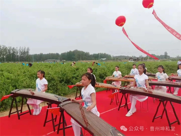 多年来,公司始终秉承中医药“传承精华、守正创新”发展宗旨,积极开展“中医药+”等特色项目,使之与现代社会健康理念相融相通。每年5月份,金银花盛开时期,开展游览观光,使游客深度体验不一样的风景画面;举办采摘节,唱响劳动光荣主炫率;开展中小学研学、古筝比赛,现场感受中医药文化精髓;组织青少年研学活动,参观科研加工场所,了解中医药研发生产流程,丰富其课余知识。坤和堂千草园现建有金银花采摘园、牡丹观赏园、芍药观赏园、樱花观赏园。