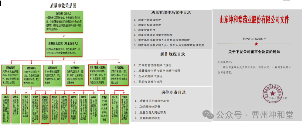 高度重视、精心组织。公司对照规范细则,组成专班,高标准、高要求、高质量建立组织机构、调配专业人员、完善基础设施、提高质量管理体系、配置设施设备等工作。公司成立了以总经理赵英为组长的质量管理体系领导小组,设立了质管部、储运部、综合部、财务部、采购部、销售部,并按照《药品批发经营质量管理规范》要求,制定了《药品储存与养护》、《质量管理体系内审》等管理制度36项、各类操作规程20项、岗位职责27条,并以公司正式文件形式下发各单位。